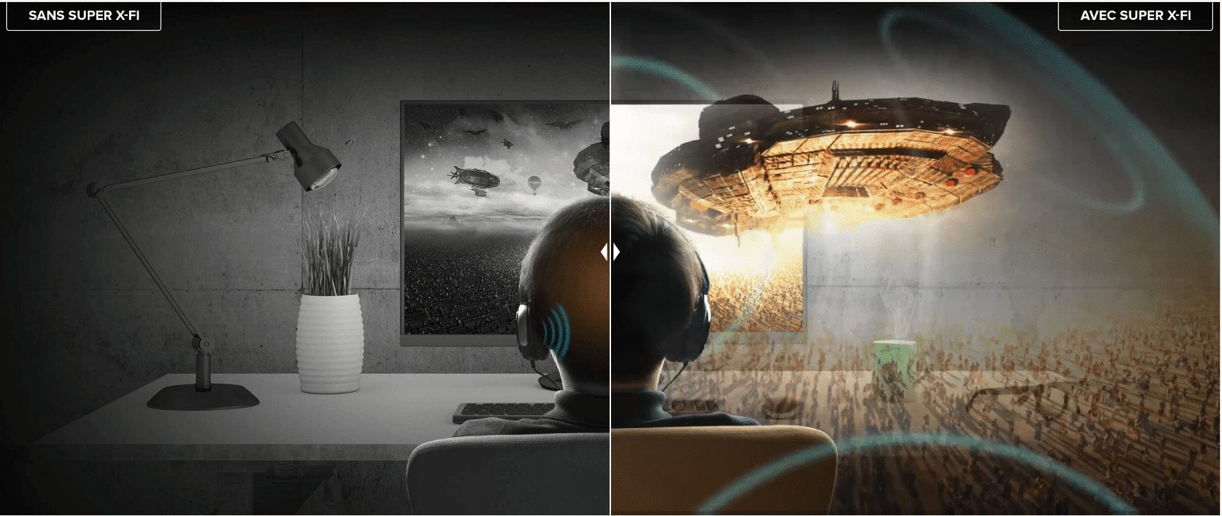 - Super X-FI - Obtenez la même profondeur complète, les mêmes détails et la même scène sonore qu'avec un système d'enceintes multiples