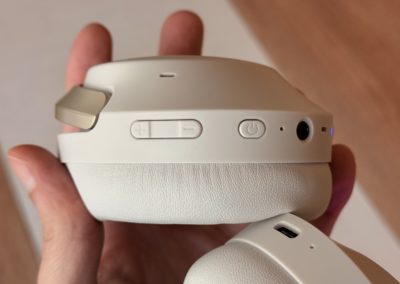 Cependant, après plusieurs jours d’utilisation, un petit défaut ressort : le placement du bouton ANC et du bouton d’alimentation. En pratique, on utilise souvent l’ANC, notamment dans les transports ou les lieux publics, mais celui-ci est positionné trop bas sur le pavillon, nécessitant un petit contorsionnement du doigt (souvent l’annulaire). Ce n’est pas rédhibitoire, mais on aurait préféré une inversion entre ces deux commandes pour plus de confort.