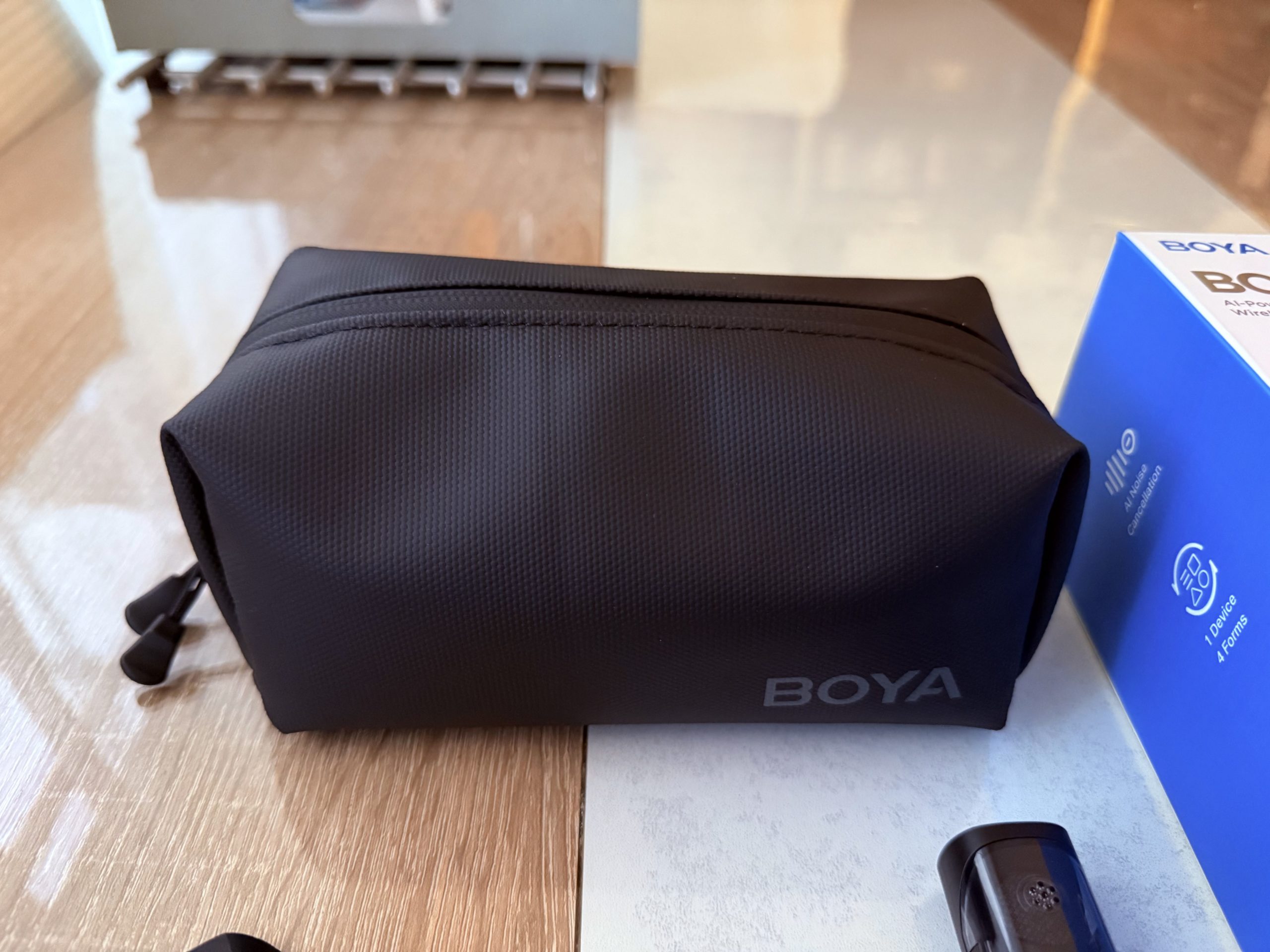 Dès que j’ai reçu le colis, j’ai compris que BOYA avait soigné sa présentation. Contrairement à d’autres micros sans fil qui arrivent dans des emballages plastiques basiques, le BOYA Magic est livré dans une boîte robuste et élégante, avec un design minimaliste qui inspire confiance. Pas besoin de lutter avec du plastique rigide : l’ouverture est simple, pratique, et donne déjà le ton.