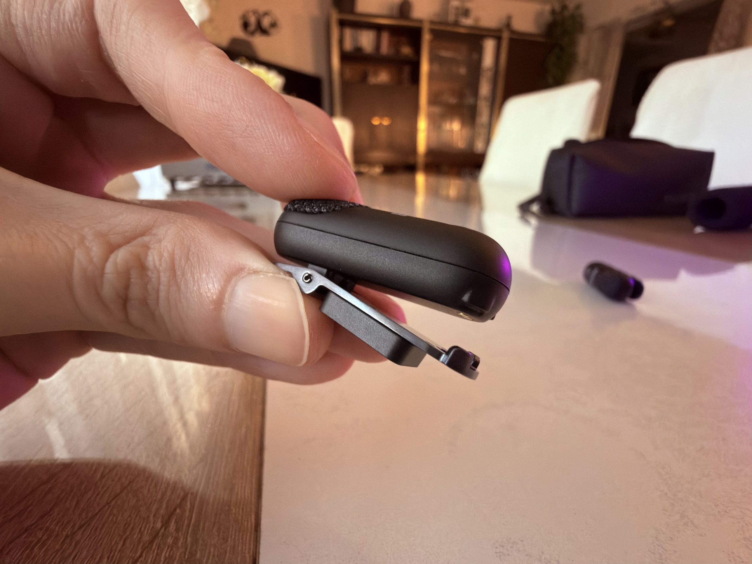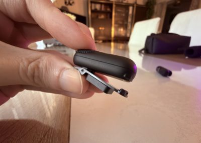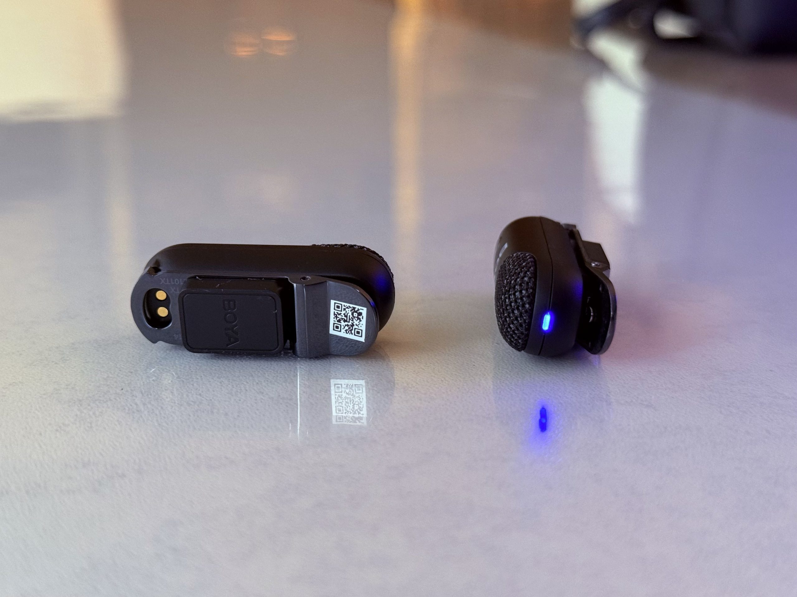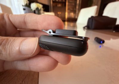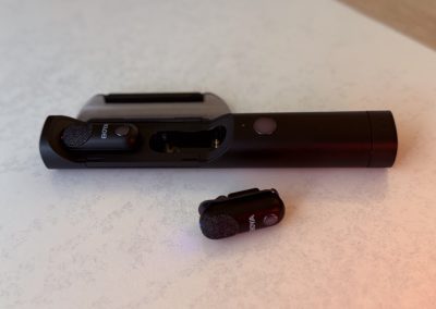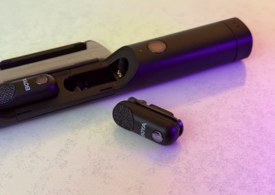 Lorsque j’ai sorti les émetteurs, ma première réaction a été : “c’est minuscule !”. Chaque micro tient littéralement entre deux doigts et se fixe discrètement grâce à un clip magnétique. Le boîtier de charge, lui, surprend par son ingéniosité : il ne se contente pas de recharger, mais devient un micro portatif dès qu’on y insère un émetteur.