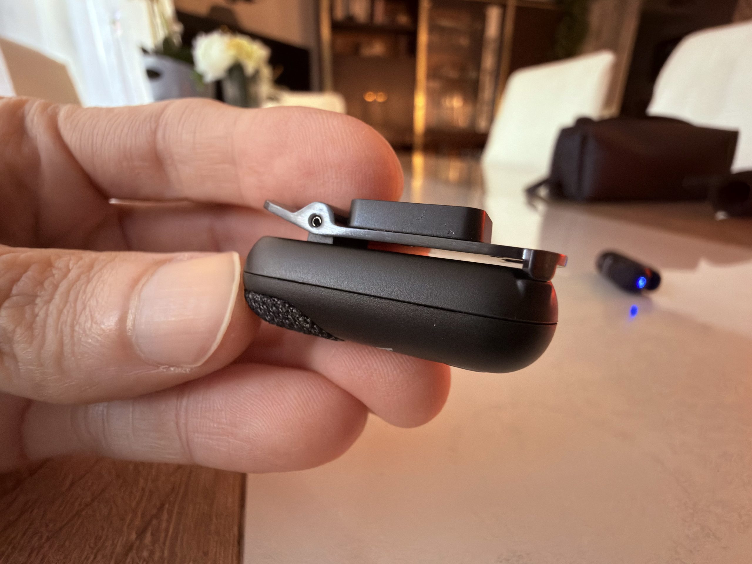 - Un micro à main une fois inséré dans le boîtier de charge