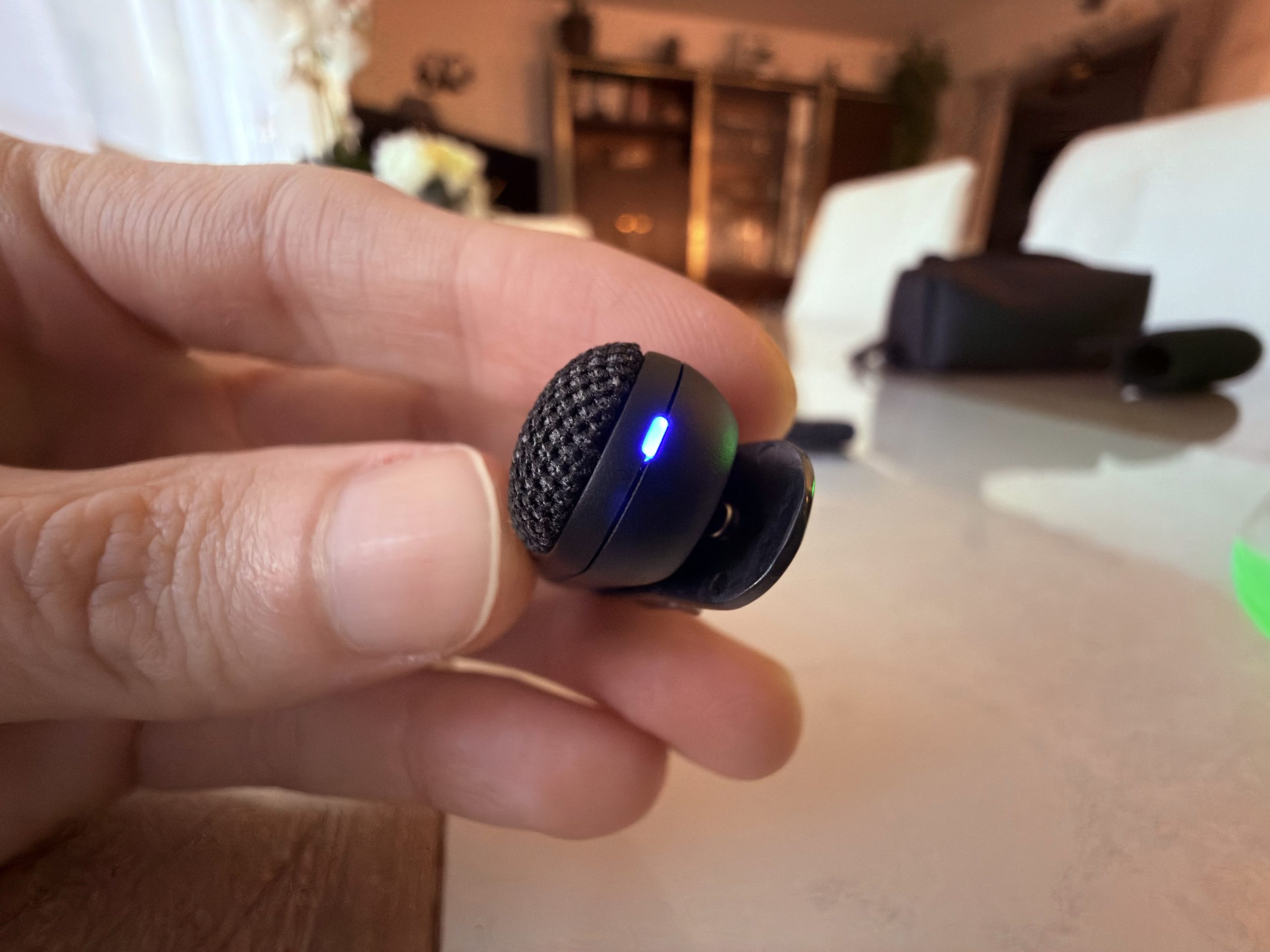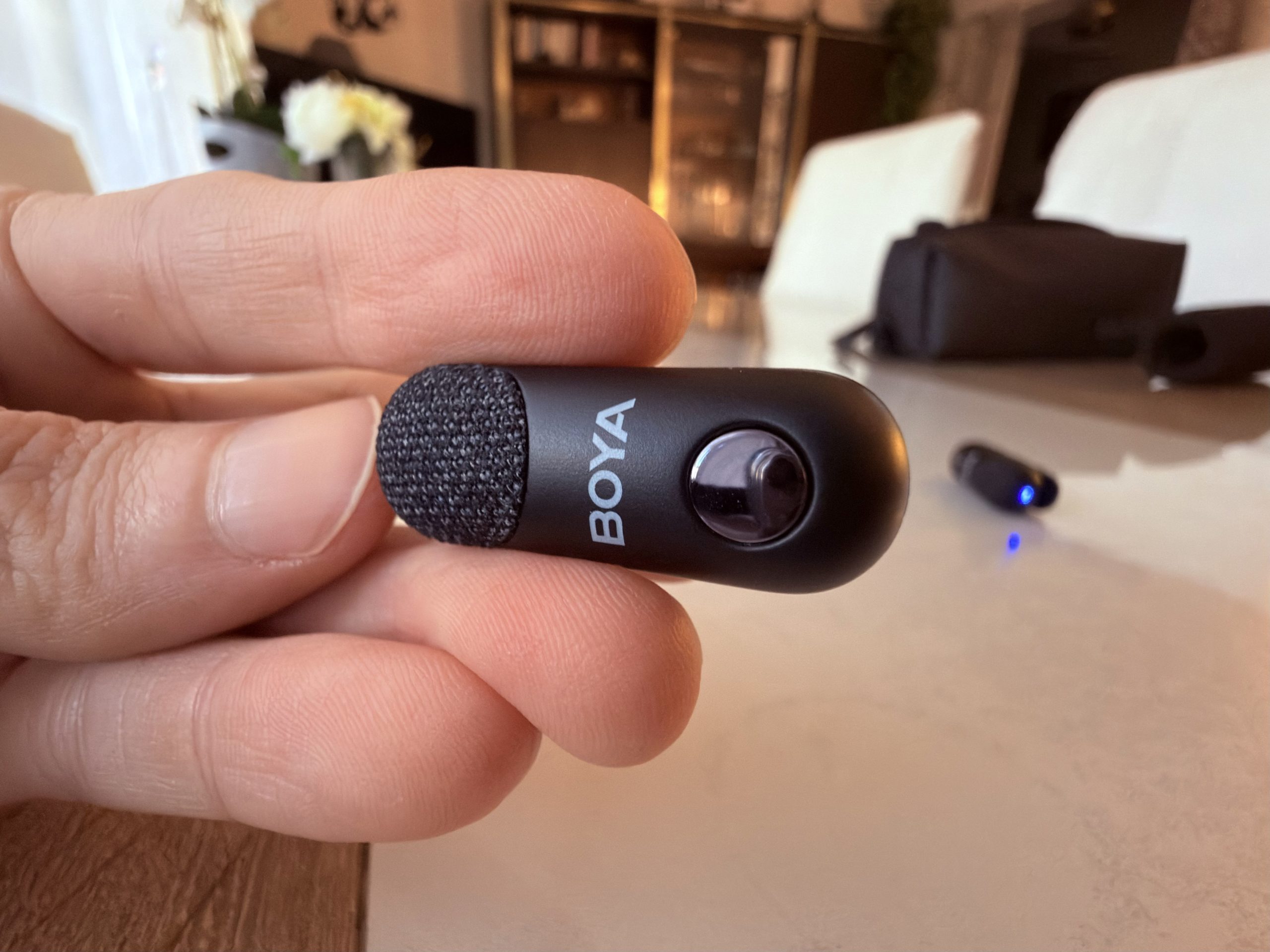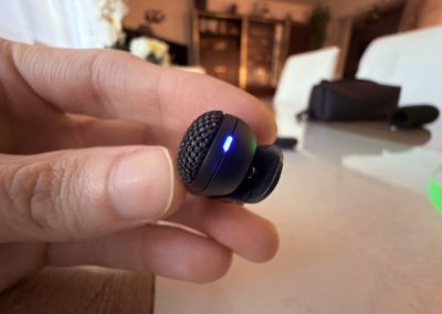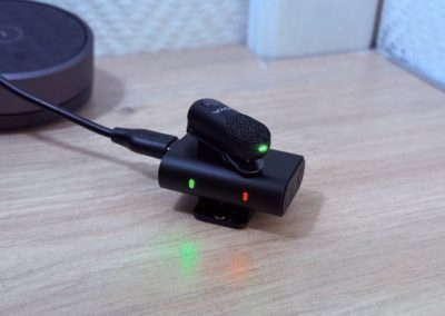Chaque micro dispose d’un petit voyant LED qui indique son état (allumé, en charge, connecté, réduction de bruit activée). C’est discret, mais suffisant pour avoir un retour rapide sans devoir deviner si l’appareil fonctionne. J’aurais aimé un petit écran OLED (comme sur certains modèles plus chers), mais, vu le prix et la compacité, ce choix est compréhensible.