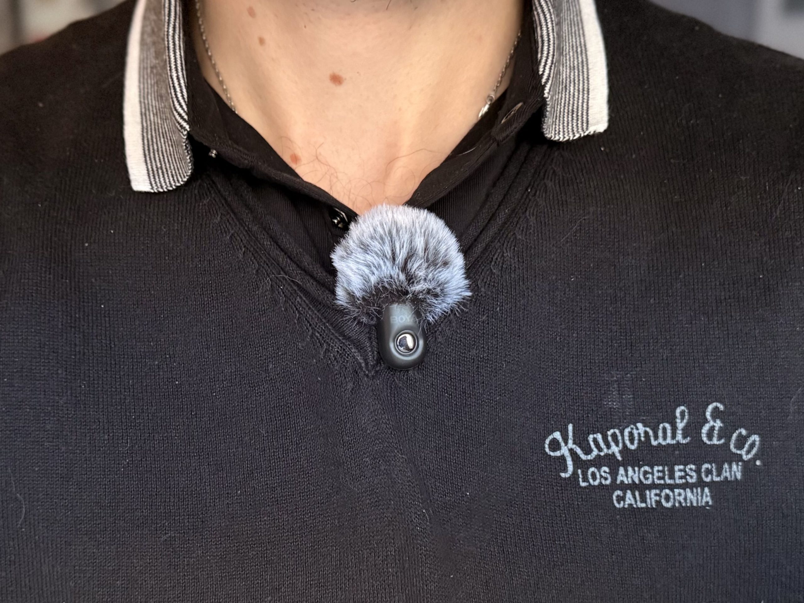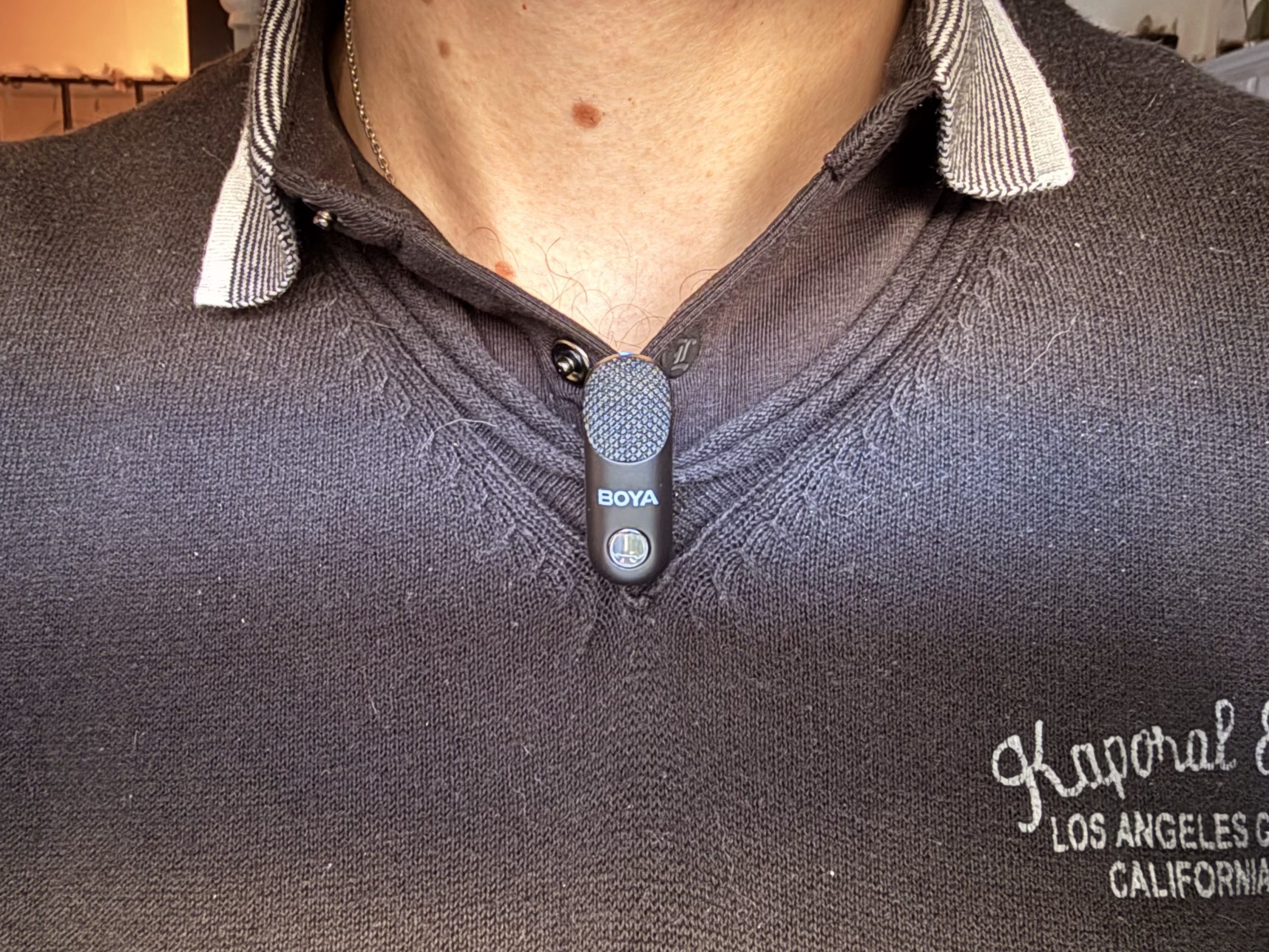 L’un des atouts majeurs du BOYA Magic, c’est son poids plume. Avec seulement 7 grammes par émetteur, on oublie presque qu’on porte un micro. Même fixé à une chemise fine, il ne tire pas sur le tissu et reste discret à la caméra.