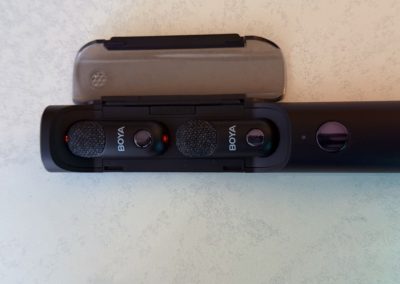 Là où la plupart des micros low cost échouent, le BOYA Magic tire son épingle du jeu : l’enregistrement en extérieur. J’ai testé le micro un jour venteux. Avec les bonnettes coupe-vent fournies et la réduction de bruit forte (-40 dB), les résultats m’ont agréablement surpris. La voix reste claire et en avant, tandis que les bruits de rafales de vent sont atténués de façon intelligente.