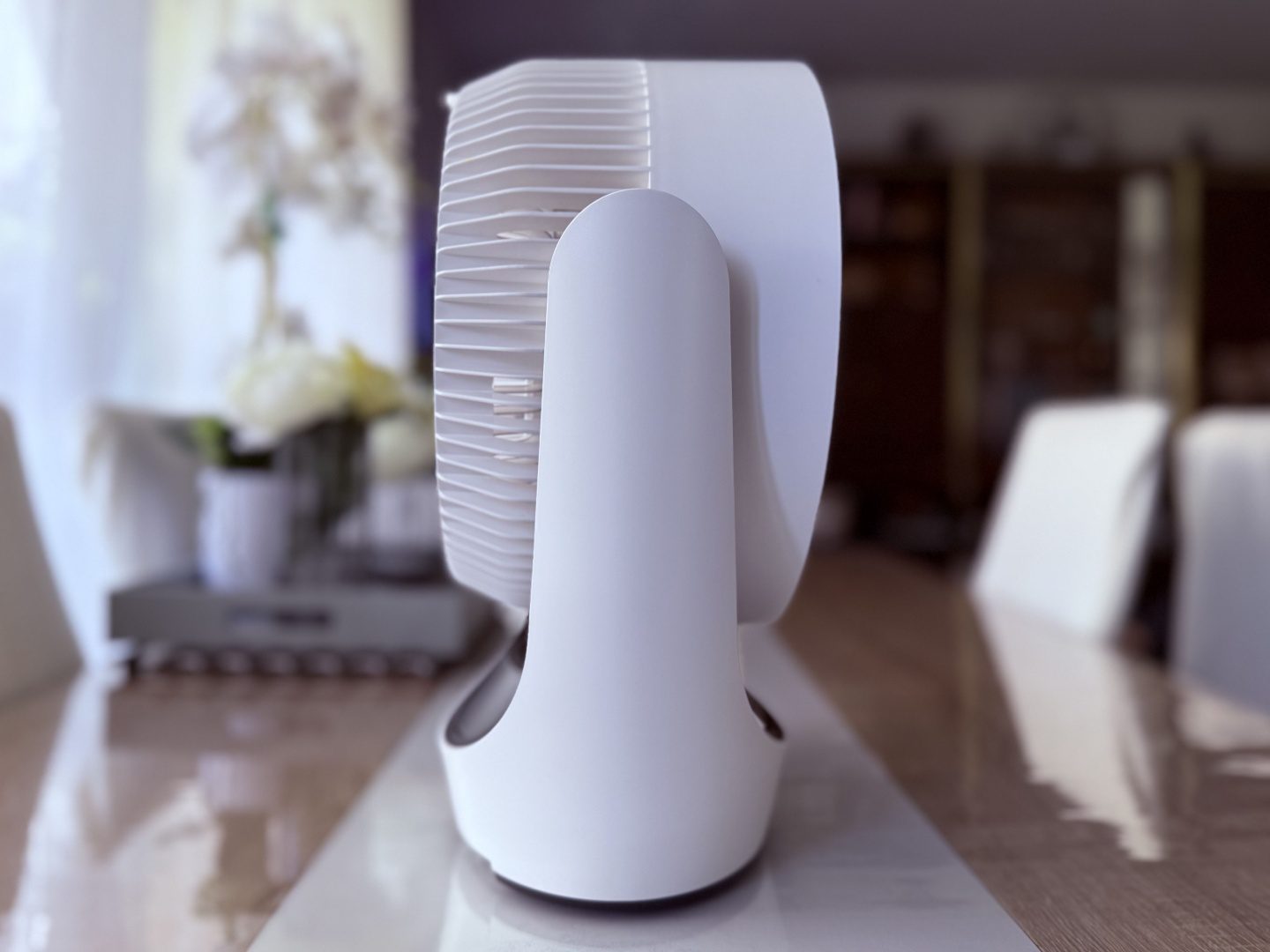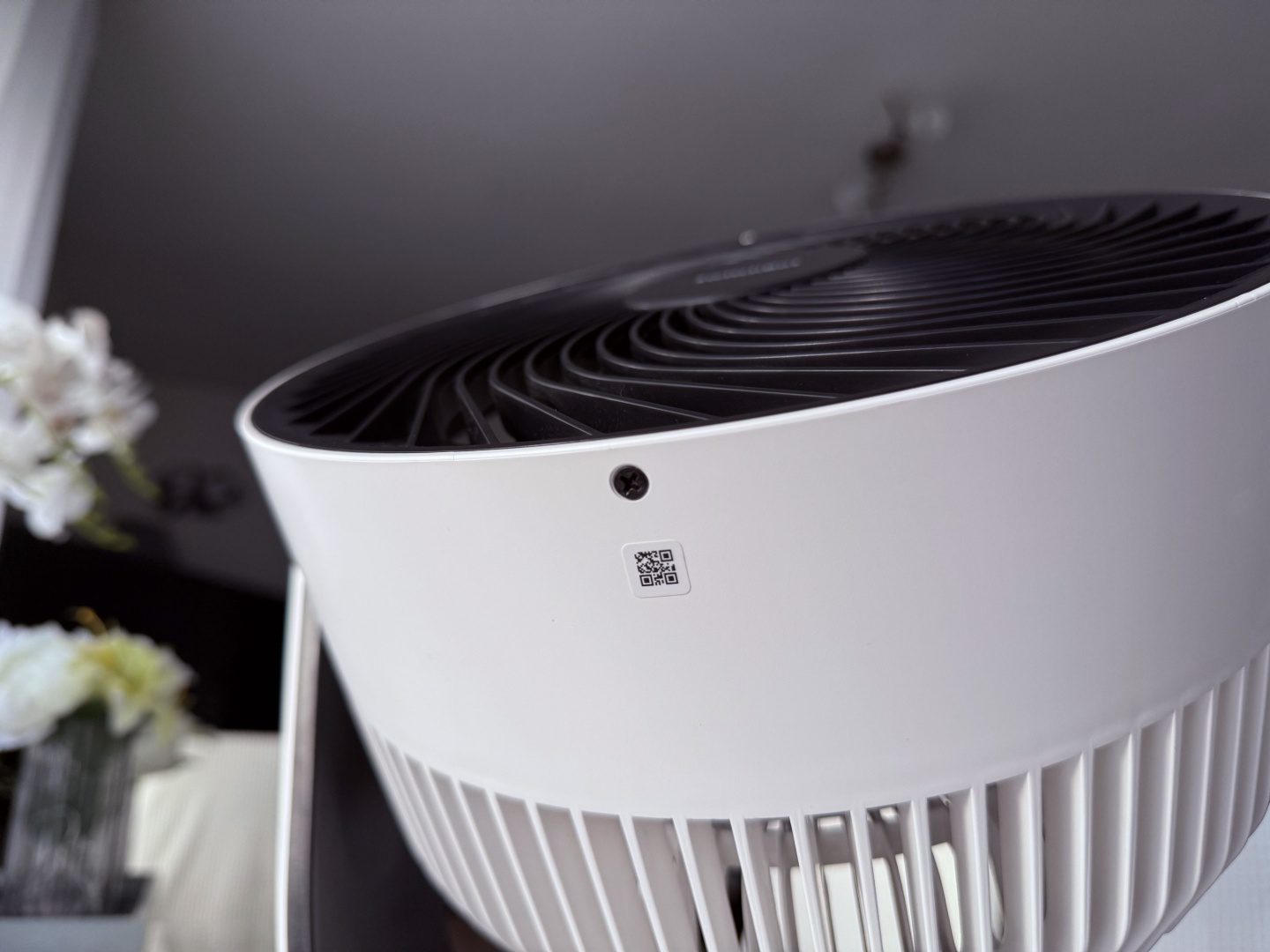 Le ventilateur rotatif connecté SwitchBot se distingue par un design compact et élégant. Avec ses dimensions de 17,3 x 33,3 x 38 cm et son poids de 2,4 kg, il est suffisamment léger et peu encombrant pour être placé dans divers espaces, tout en étant assez robuste pour une utilisation à long terme.