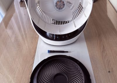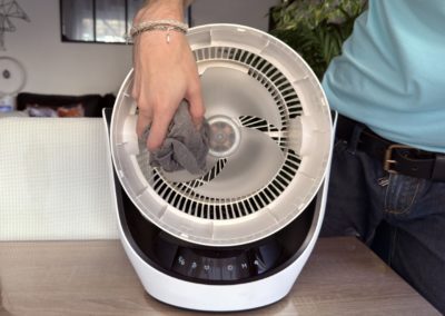 Une caractéristique notable du ventilateur SwitchBot est son panneau avant amovible, qui facilite son nettoyage. En effet, pour accéder au moteur et aux pales, il suffit de dévisser une vis, ce qui rend l’entretien de l’appareil très simple. Cependant, il est important de noter que le moteur lui-même ne peut être nettoyé qu’à l’aide d’un chiffon, car l’eau ne doit pas entrer en contact avec celui-ci.