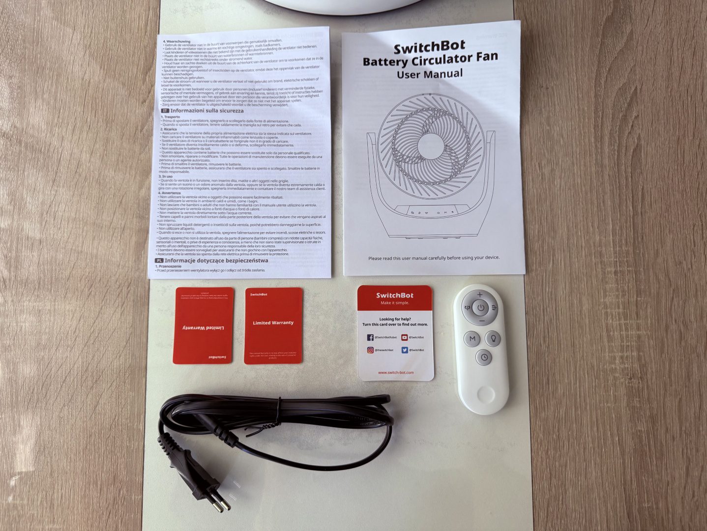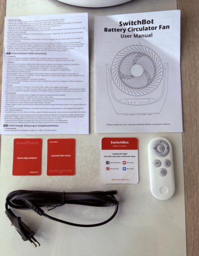 Le ventilateur rotatif SwitchBot arrive dans un emballage au design épuré, aux couleurs dominantes rouge et blanc, emblématiques de la marque. Le packaging, à la fois moderne et fonctionnel, est facile à ouvrir et protège bien le produit. À l’intérieur, vous trouverez :