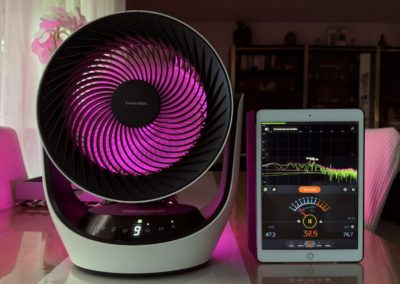 En outre, l’appareil peut être automatisé en fonction de la température et de l’humidité. Par exemple, vous pouvez configurer l’appareil pour qu’il s’active automatiquement dès que la température atteint un certain seuil ou lorsque l’humidité dépasse un niveau donné. Cela permet de créer une expérience de confort optimale en toutes circonstances.