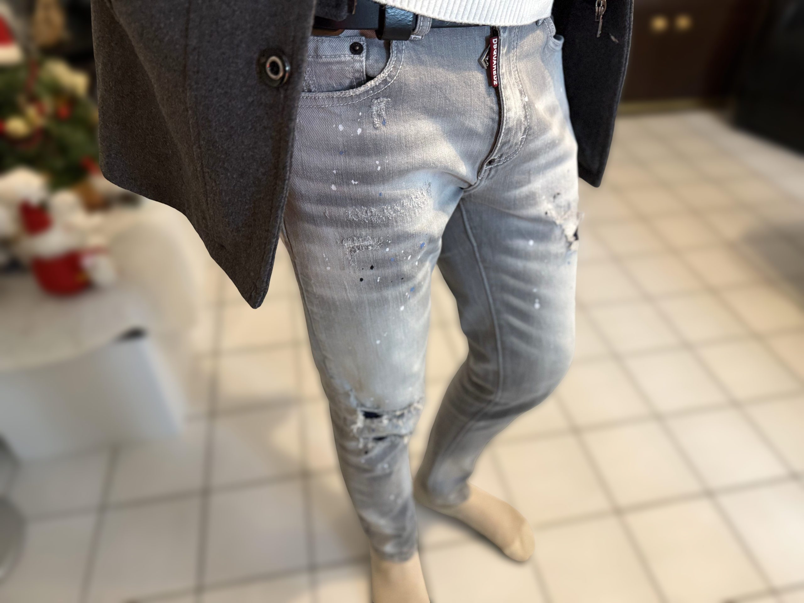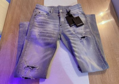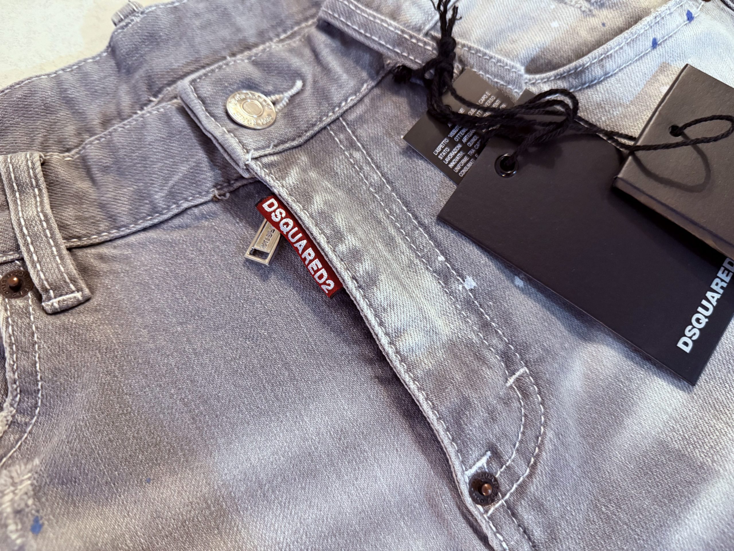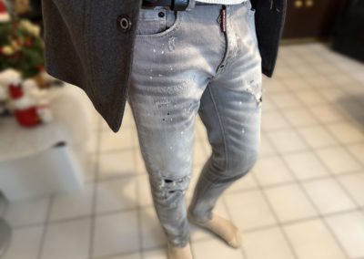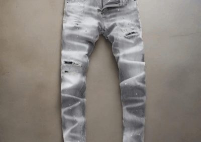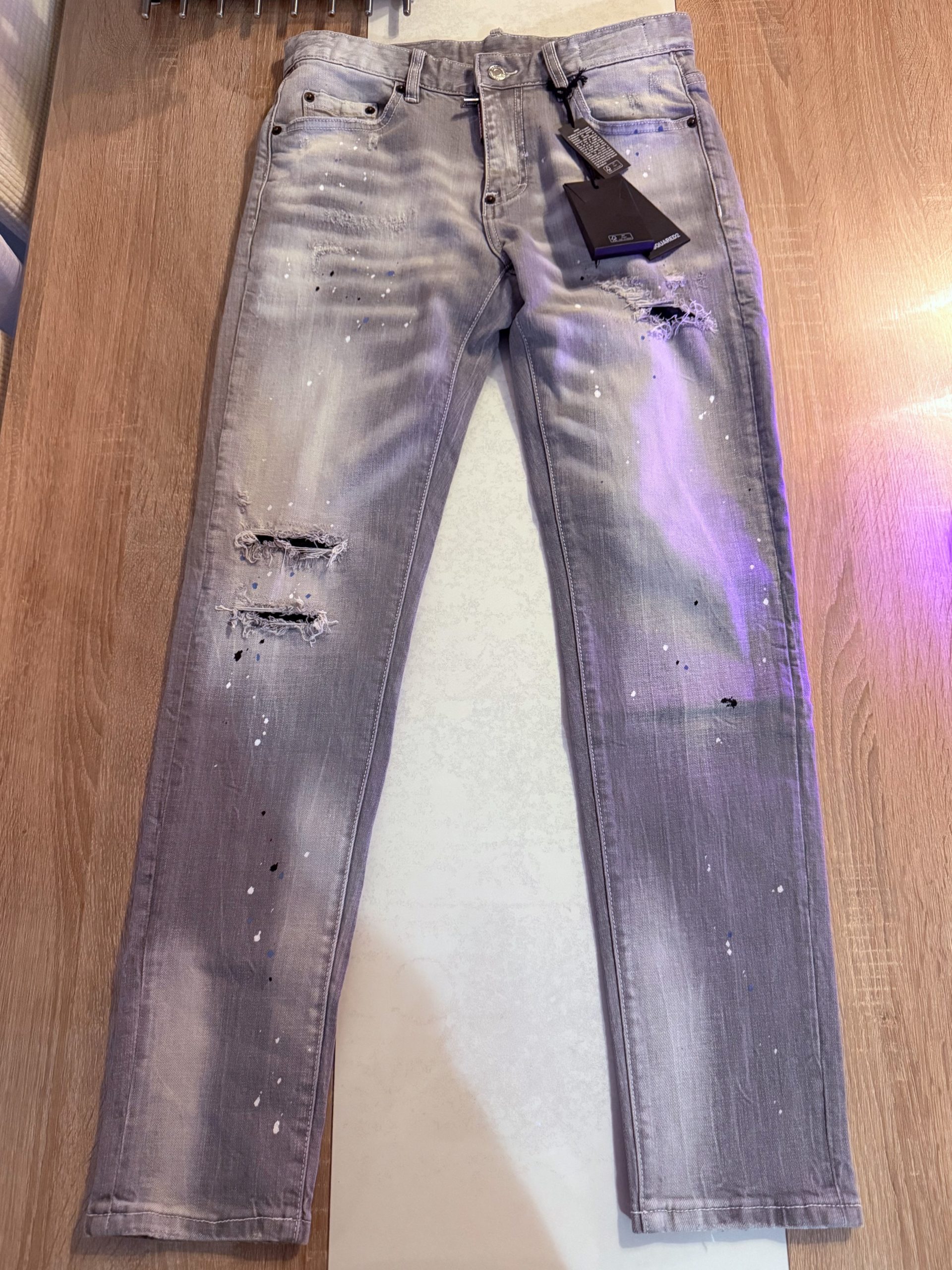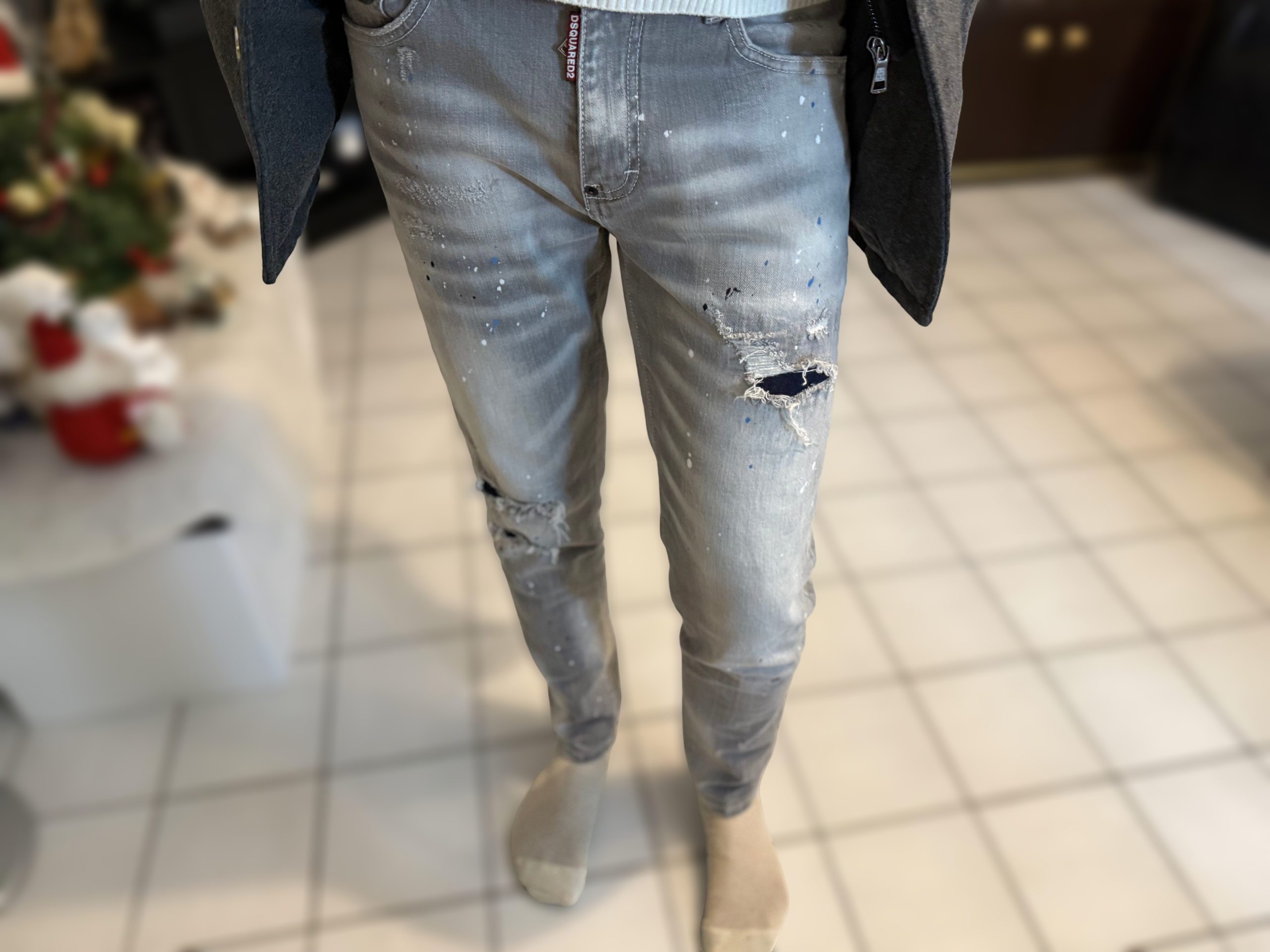 Jeans gris pour homme slim, délavé, trous, patchs, peinture, imitation de marque tendance Dsquared 2.