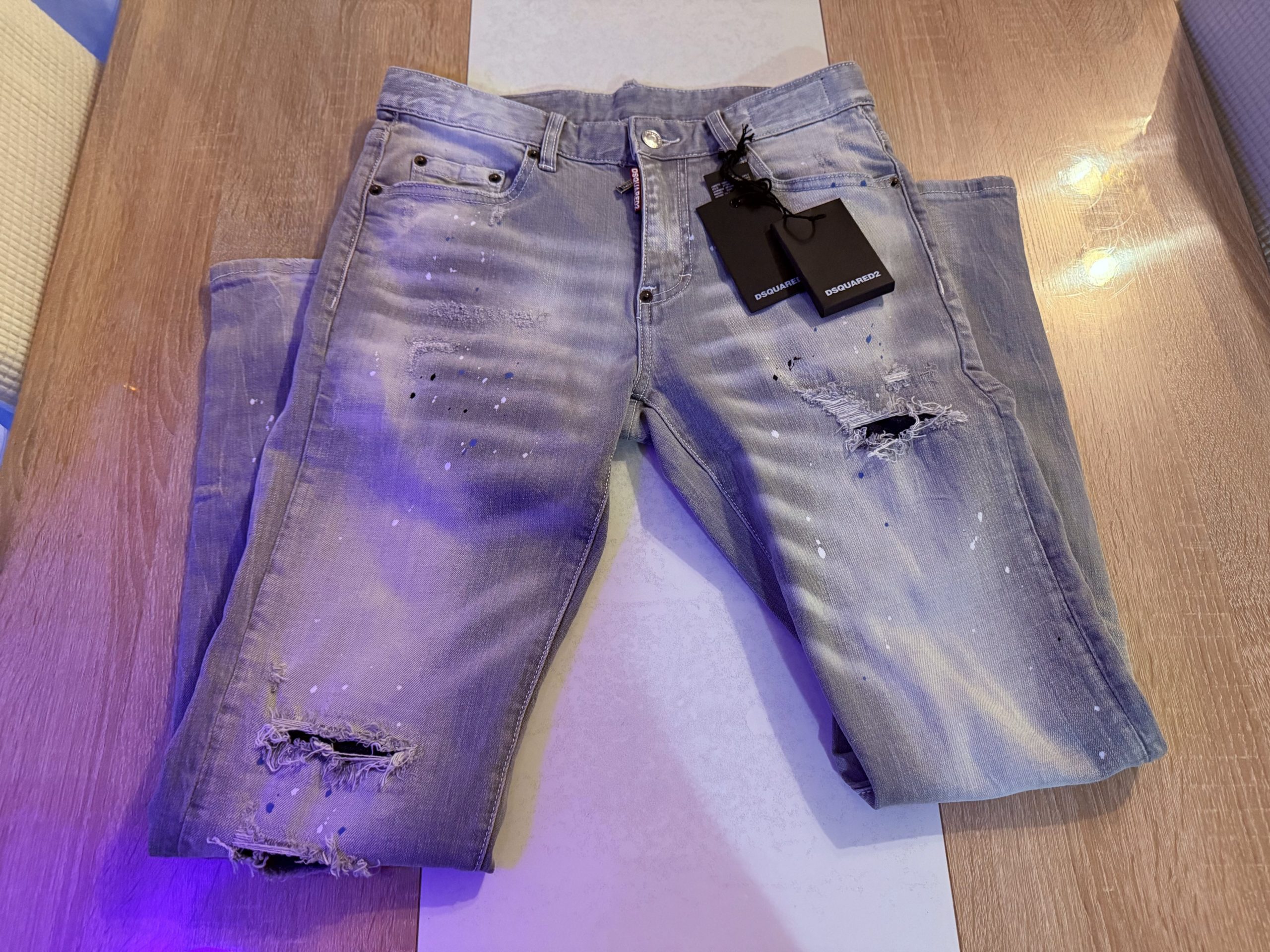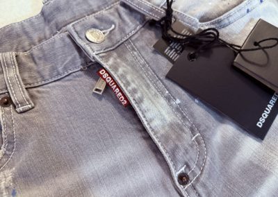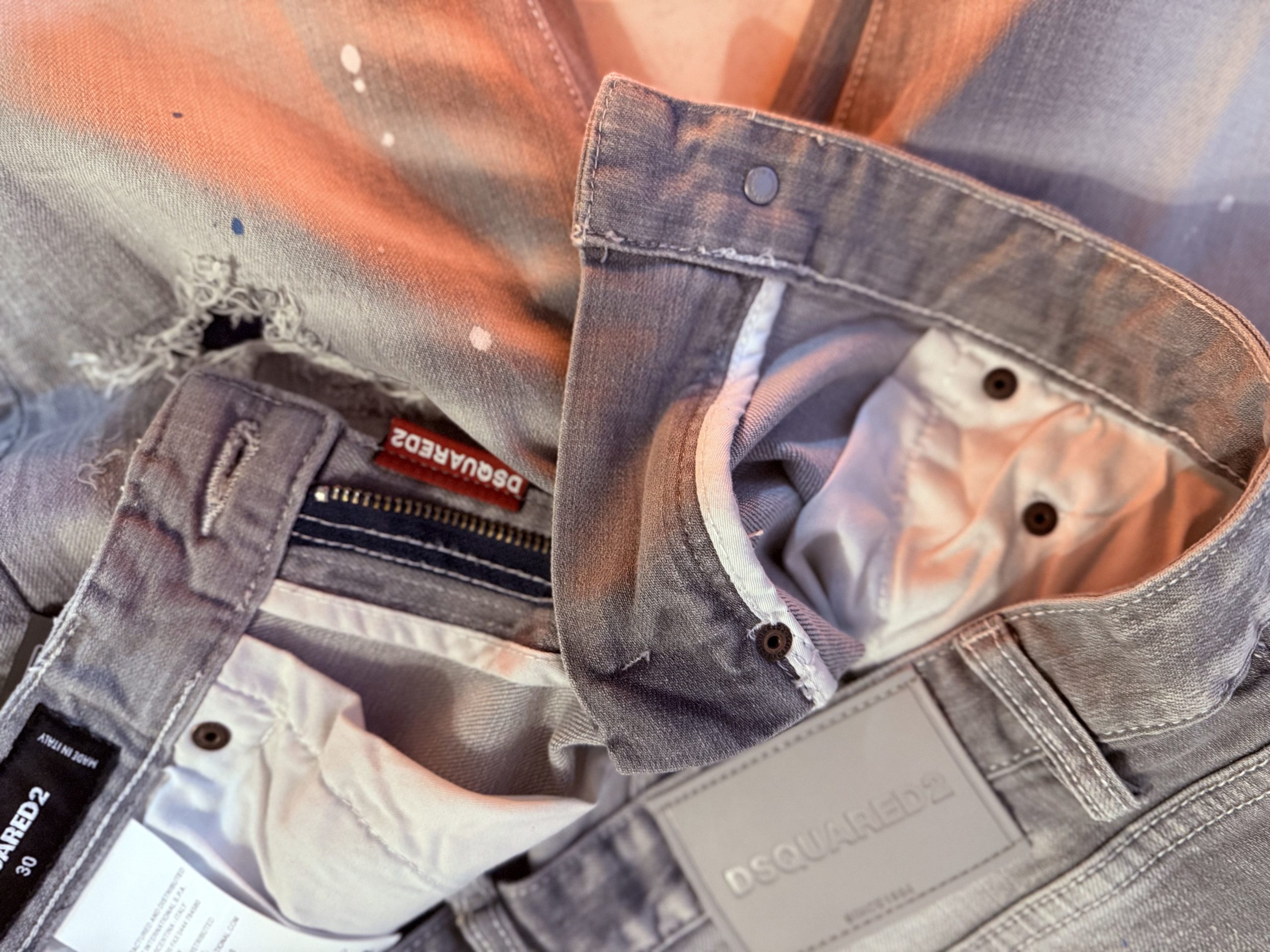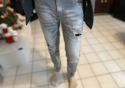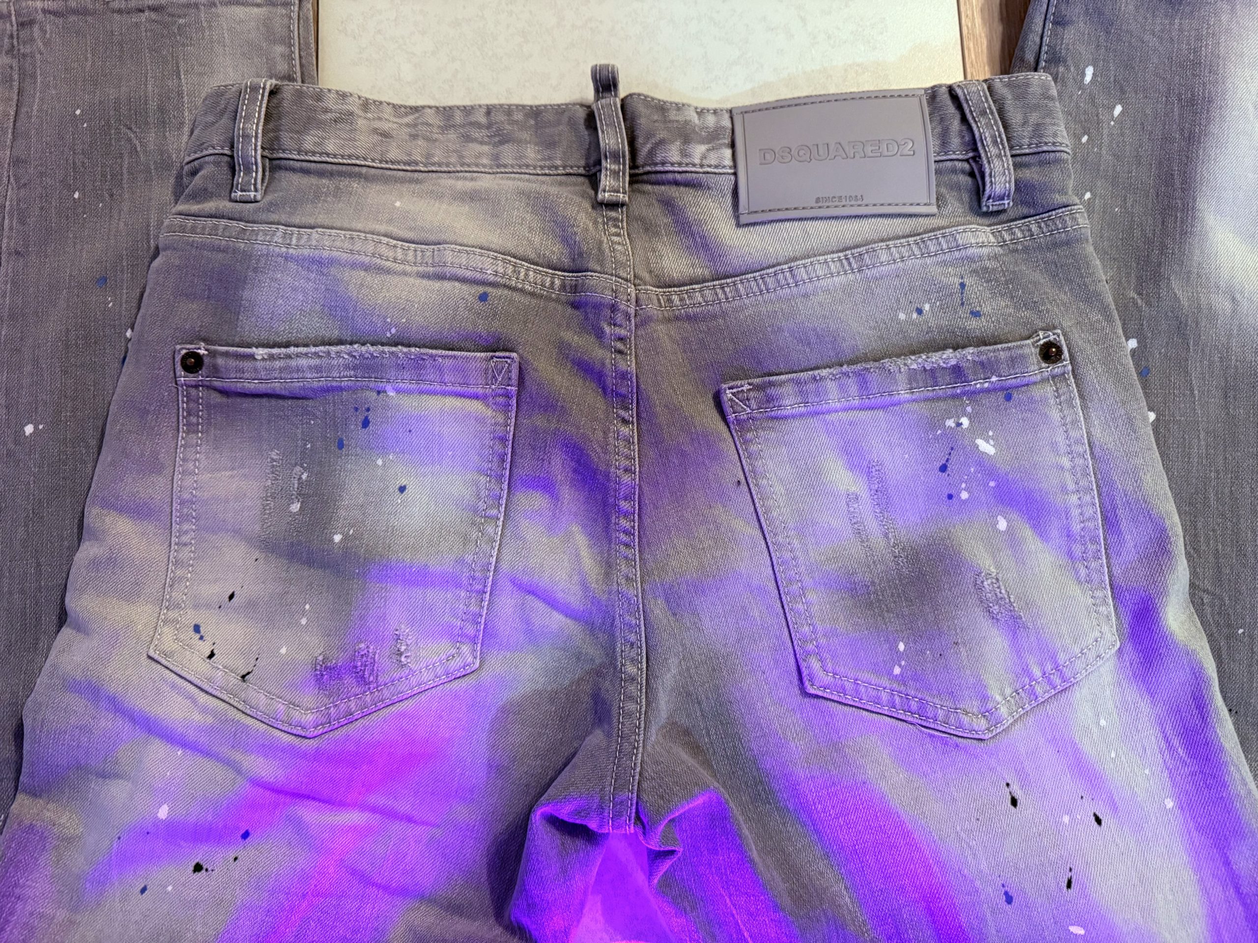 Jeans gris pour homme slim, délavé, trous, patchs, peinture, imitation de marque tendance Dsquared 2.