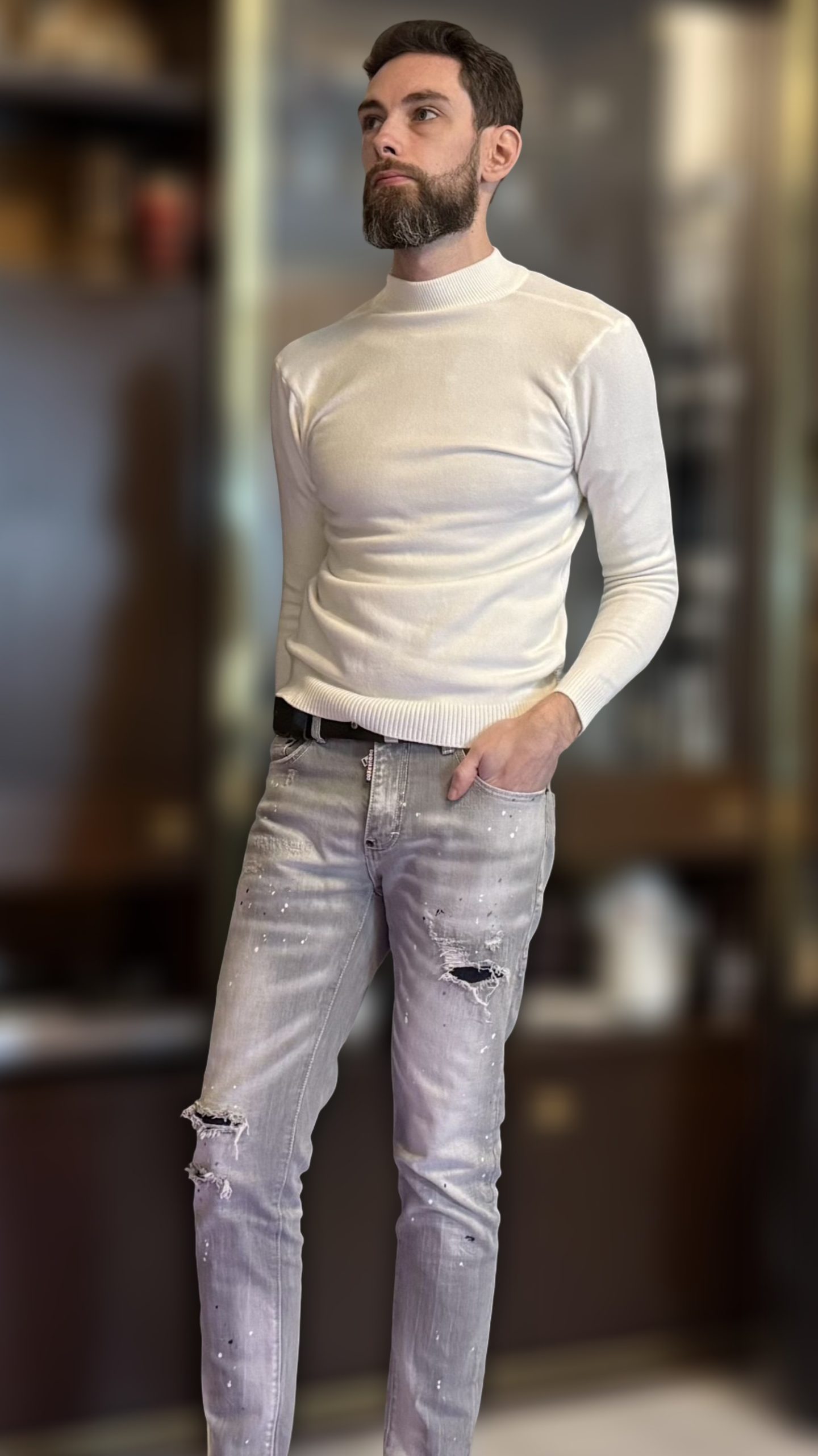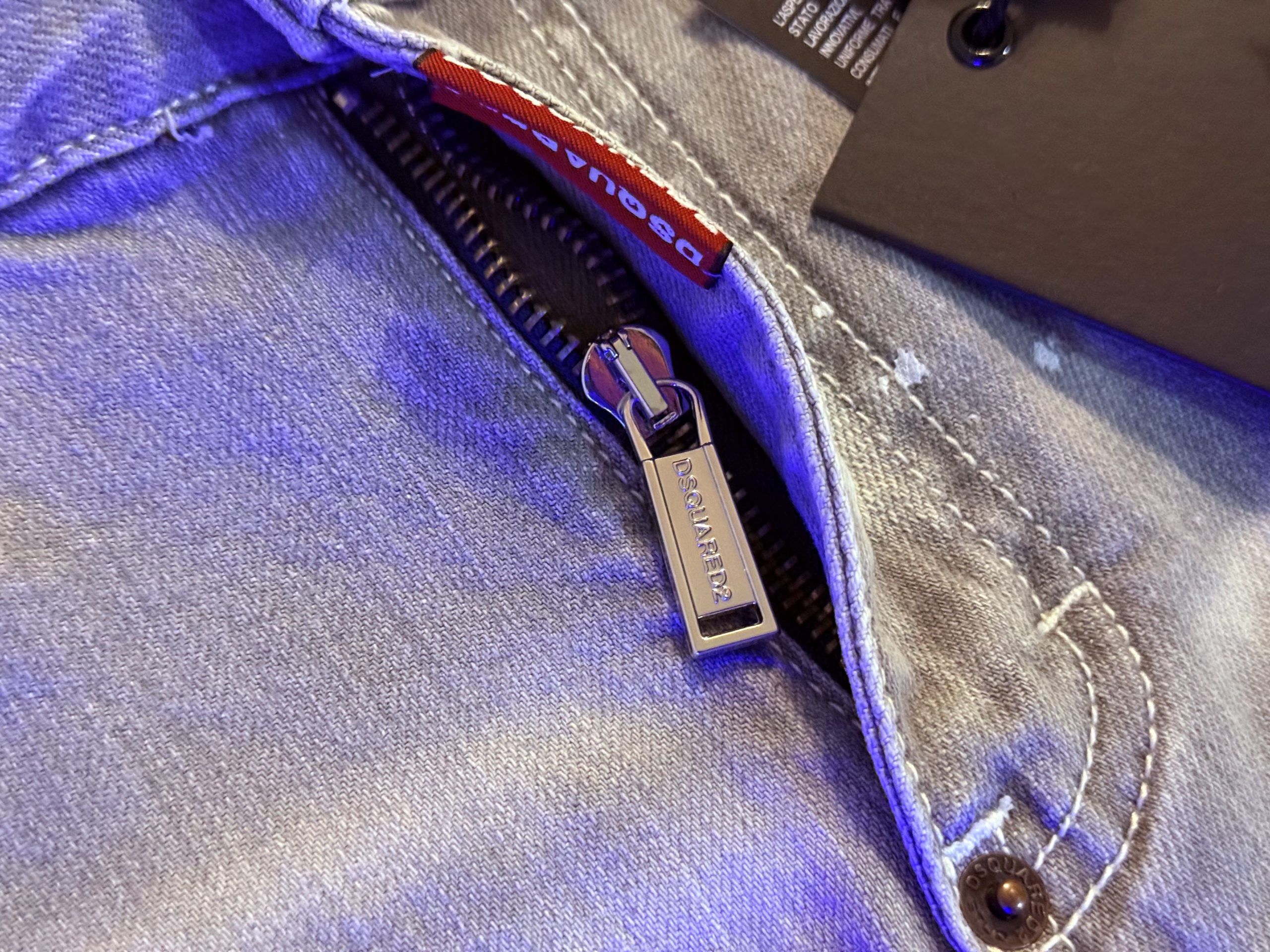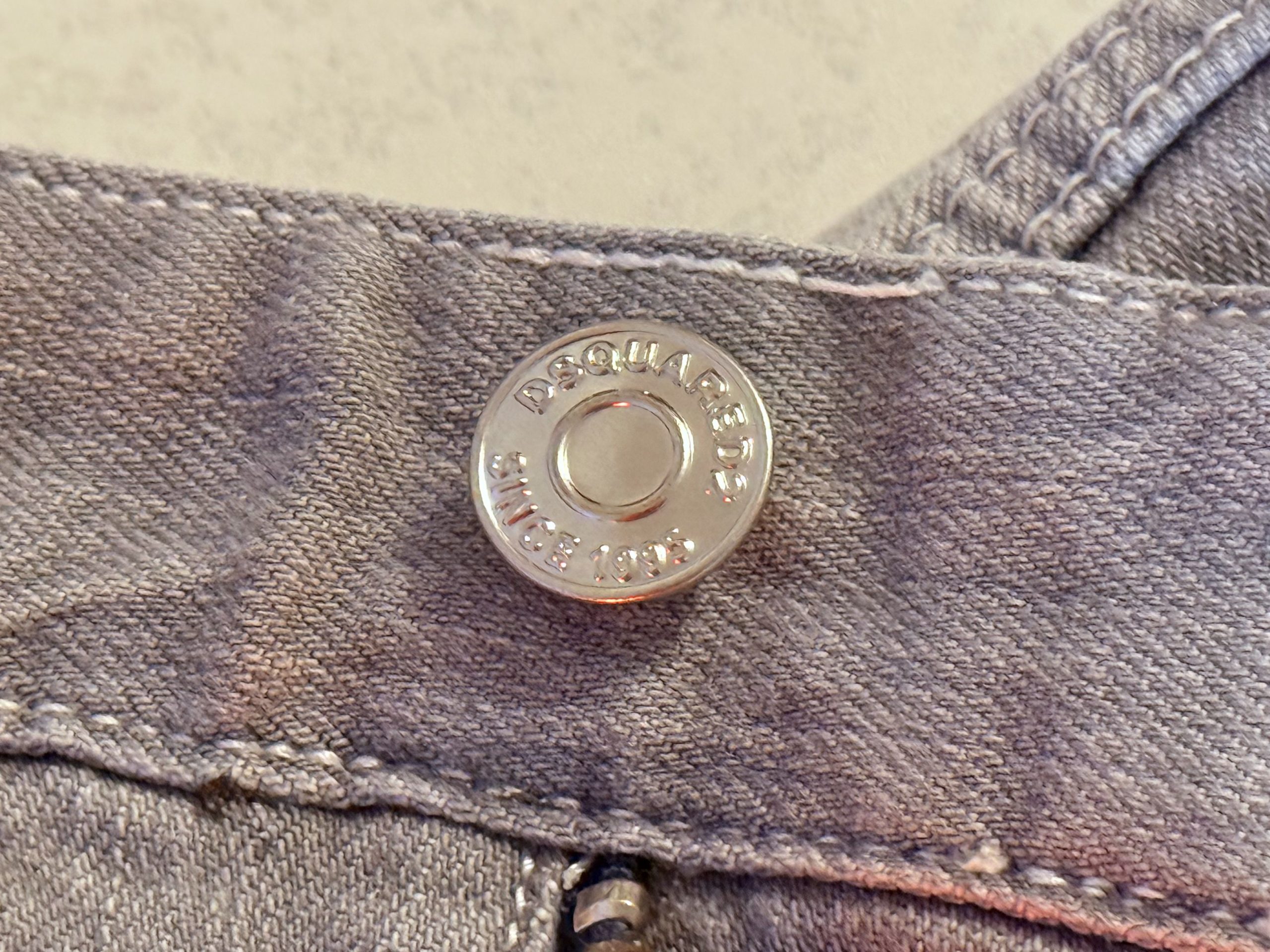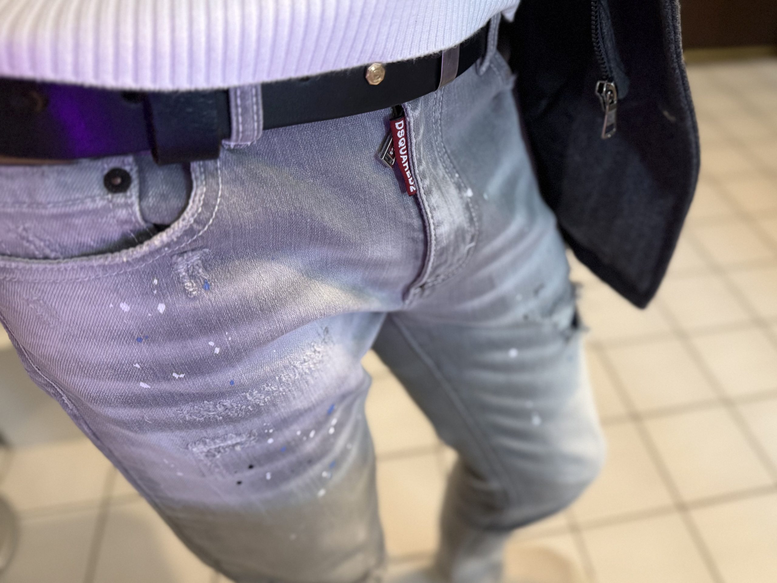 Jeans gris pour homme slim, délavé, trous, patchs, peinture, imitation de marque tendance Dsquared 2.