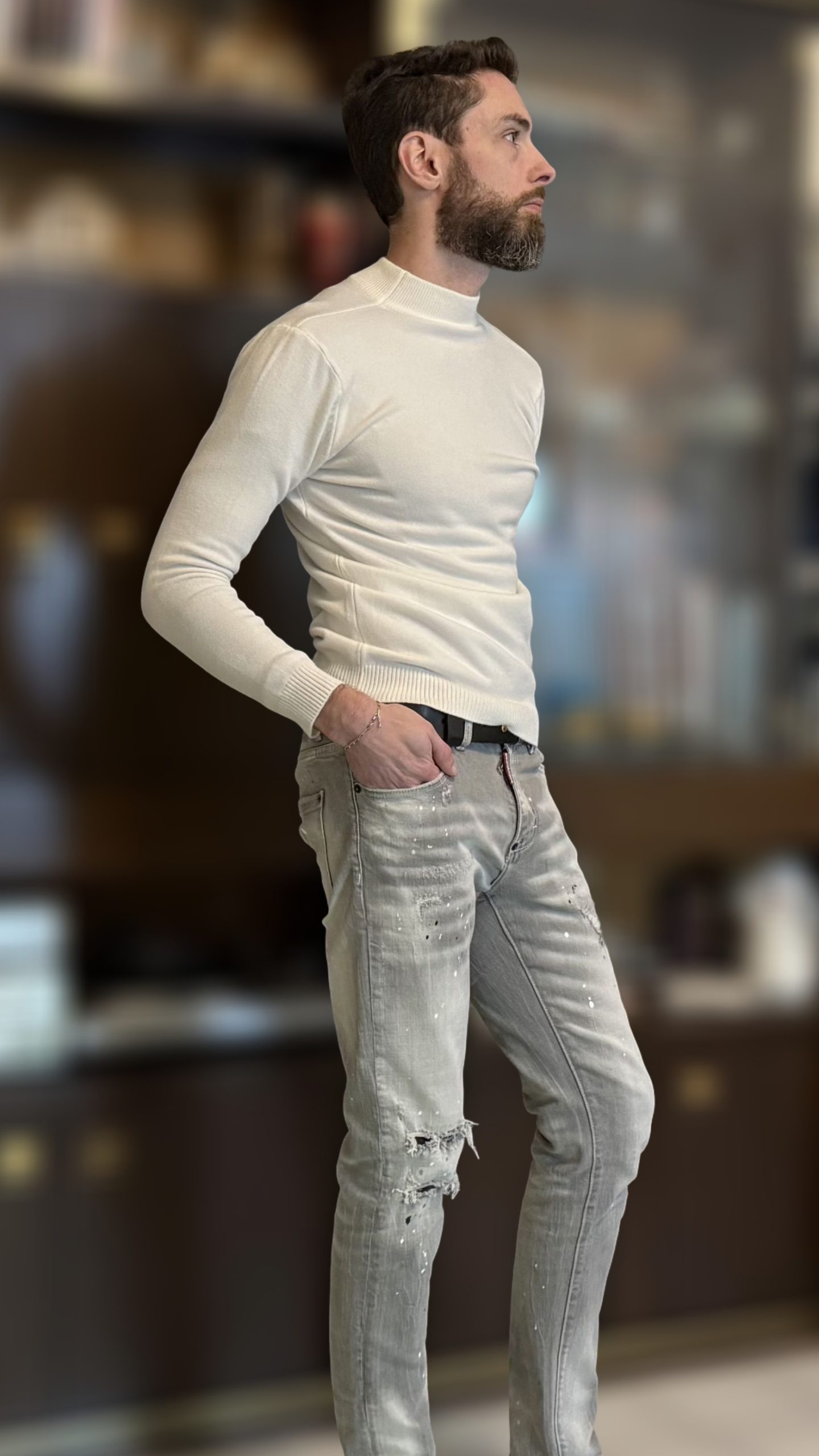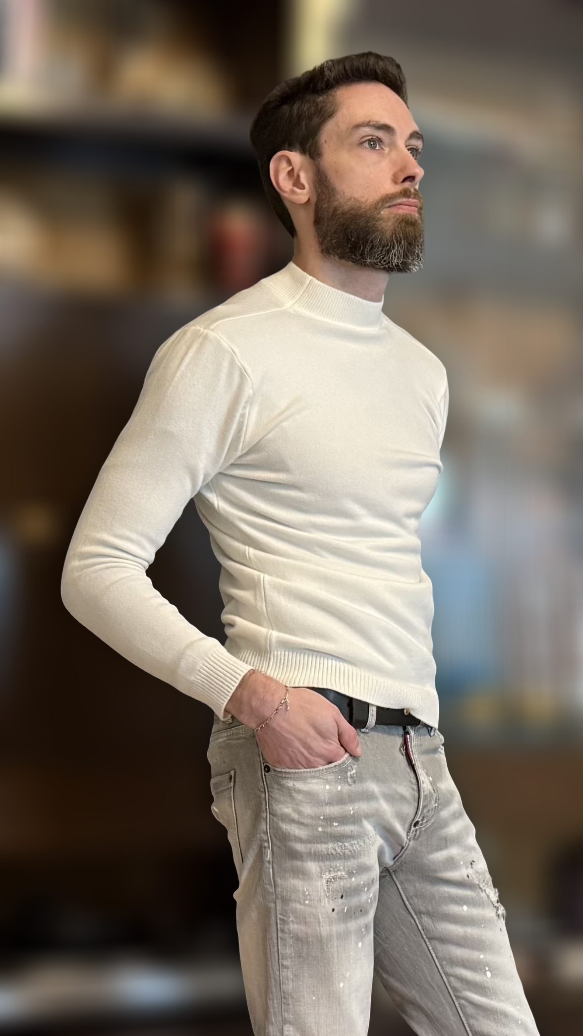 Pull semi-col roulé slim pour homme