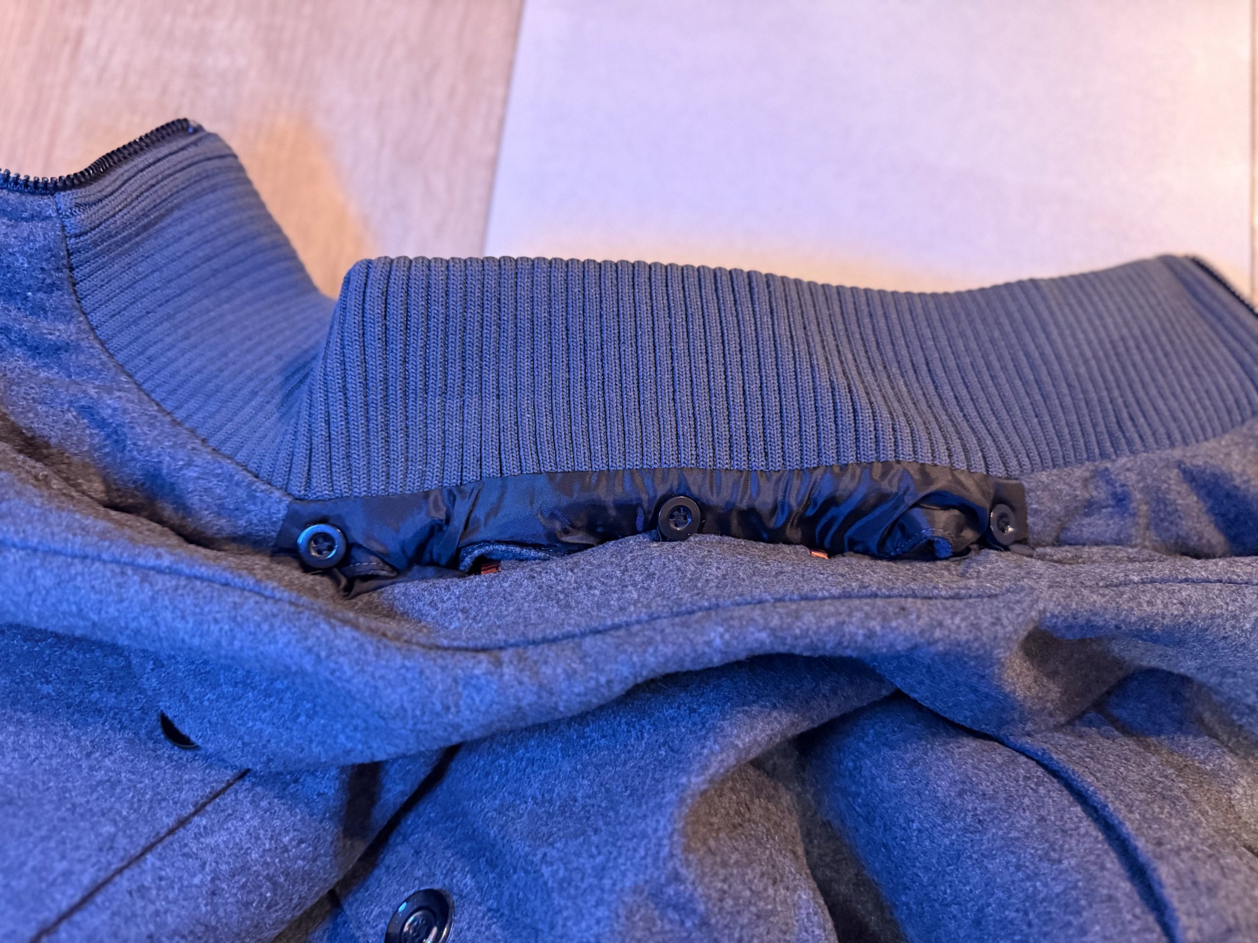 Hiver : porté sous un manteau, son col semi-remonté protège efficacement des courants d’air.