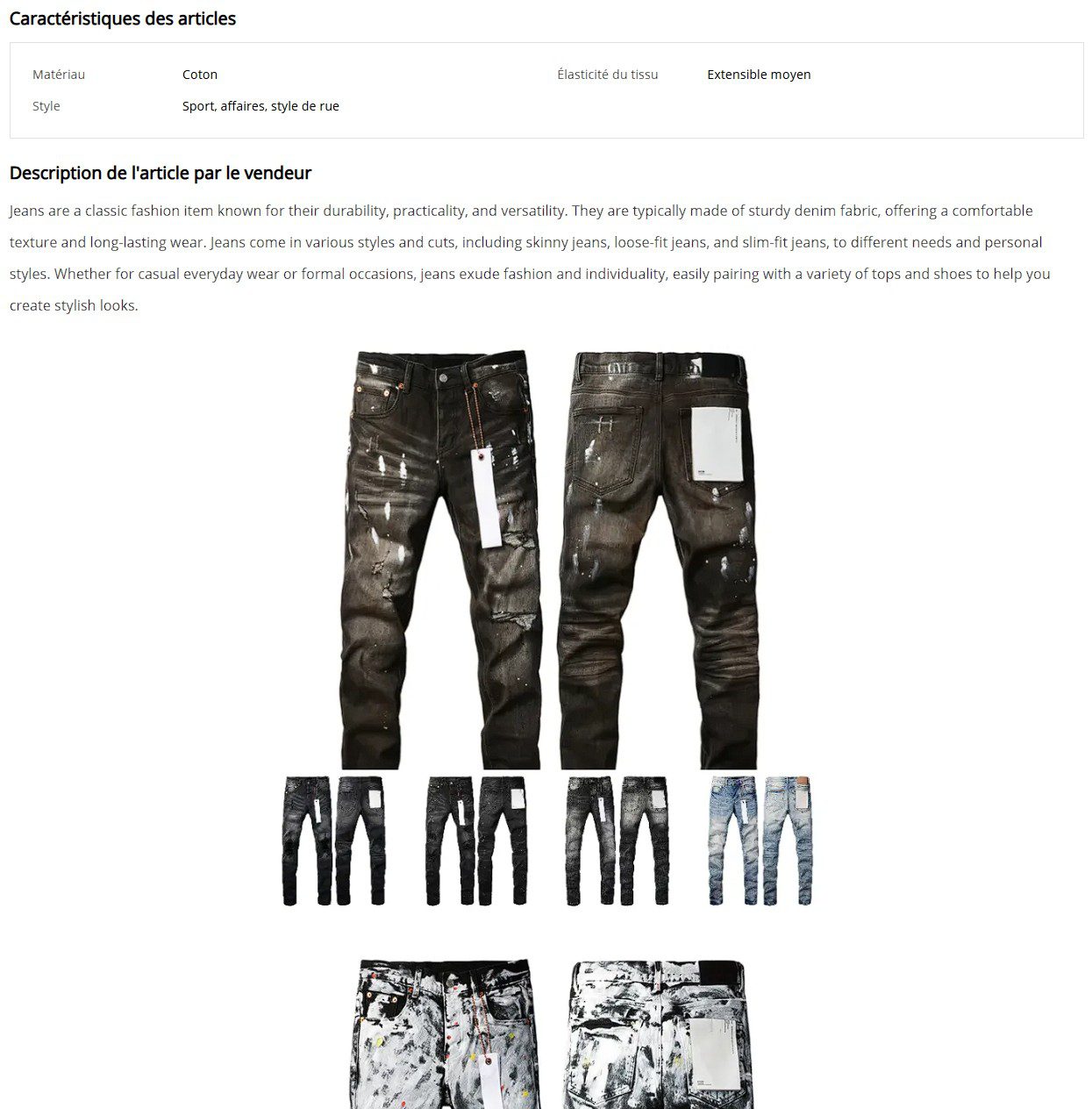 - Fiches Produit Incomplètes : J’ai relevé que certaines fiches manquent de détails cruciaux, notamment sur la composition des textiles ou les guides de tailles précis pour les articles de style.